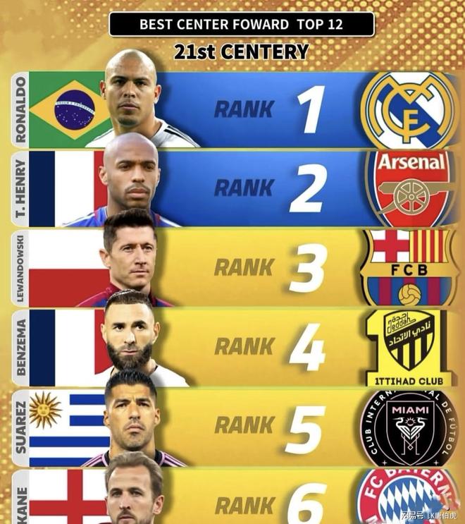 亨利的排名严重虚高了,至少在此榜单中他最多排进前五,莱万、本泽马、苏亚雷斯以及舍甫琴科的名字肯定都可以在他前面。虽然在英超时期他算是获得了巨大成功,但是和这几位顶级中锋相比较来看法国人是没有任何优势可言的。