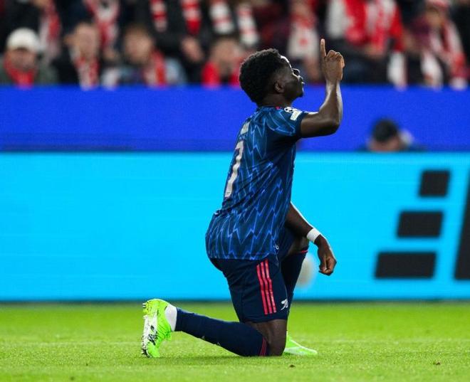 狂攻不止的阿森纳,在第32分钟造成了对方球员禁区内手球,主裁判回看VAR后,给了枪手一粒点球,萨卡主罚命中,帮助球队取得了1-0的领先,凭借此球,萨卡也成为了欧冠改制后,阿森纳队史首位连续四个欧冠客场取得进球的球员。